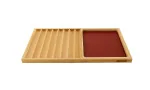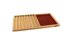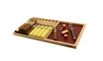 The adorini Cigar Service Tray with Red Insert is an elegant and practical way to stylishly present your cigars. This high-quality tray made of cedar wood is perfect for use in hotels, bars, cigar lounges, or private homes. The red insert made of fine Italian smooth leather protects your cigar accessories from scratches and ensures a secure grip. The tray features eight slots that provide space for cigars, which can also be stacked. It accommodates all cigar formats up to a length of 18.5 cm and measures 34 x 19.5 x 1.3 cm. The adorini serving tray is also available without the red leather insert in our shop.