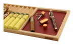 - Elegant cedar wood with a red insert made of Italian smooth leather
