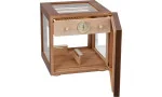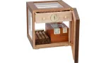 The cube-shaped humidor impresses with its warm walnut veneer and the all-round glazed construction, which always allows a view of your valuable cigar collection. Gold-plated hinges and two square gold handles on the pull-out drawer give the humidor an exclusive look. A discreet opening on the door frame allows the glazed door to be opened easily.