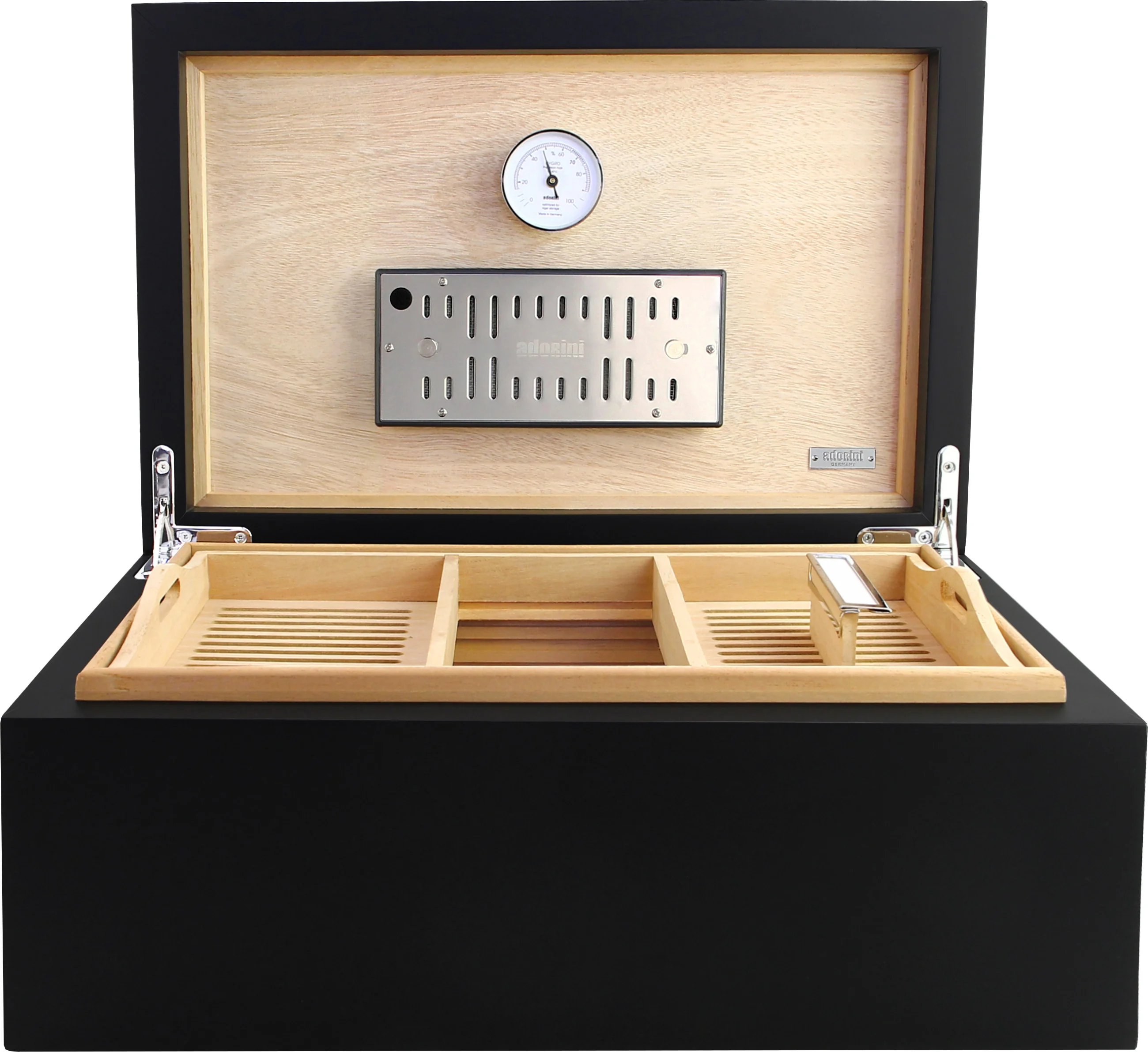 Every adorini Grande size humidor is equipped with a tray featuring the patented RibTech air circulation structure. This not only ensures even humidity distribution, but also allows the use of horizontal and vertical dividers.