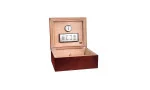 This modern and functional humidor from the adorini Basic series in size M impresses with its matte finish, beautiful grain, and versatility. With space for approximately 75 cigars or smaller cigar boxes, it offers an ideal solution for safely storing your cigars. It comes with an analog hygrometer and a passive sponge humidifier. The hygrometer measures humidity using a metal coil and, together with the humidifier, is magnetically and flexibly attached to the humidor lid. The humidor features matte silver hinges on the interior and a particularly strong sealing lip that ensures optimal humidity retention. A vertical divider allows for additional compartmentalization of the interior.
