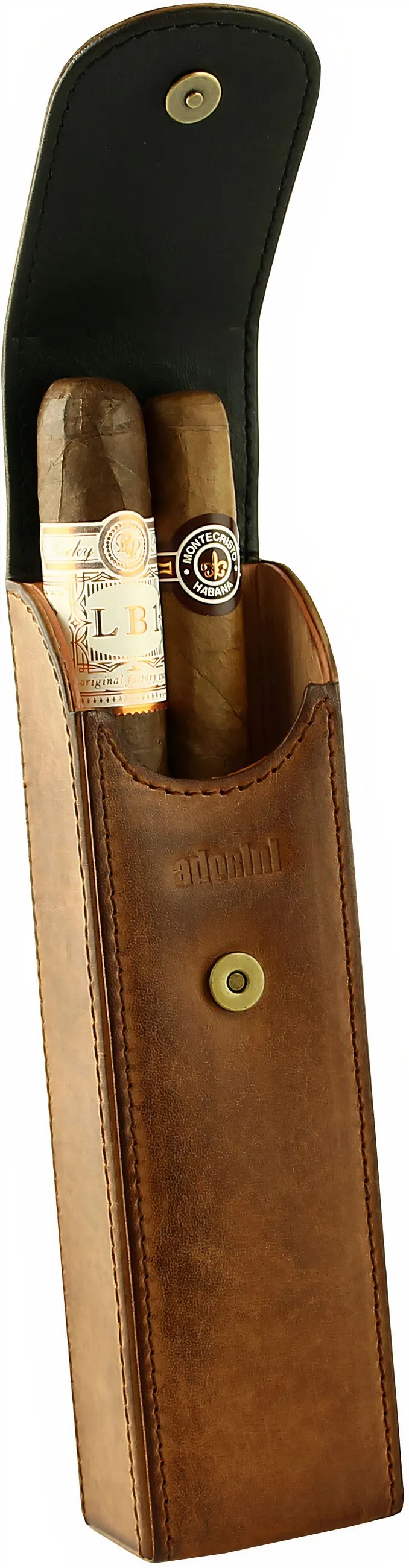 adorini pocket vintage leather cigar case 2 cigars brown with pouch for cutter or lighter