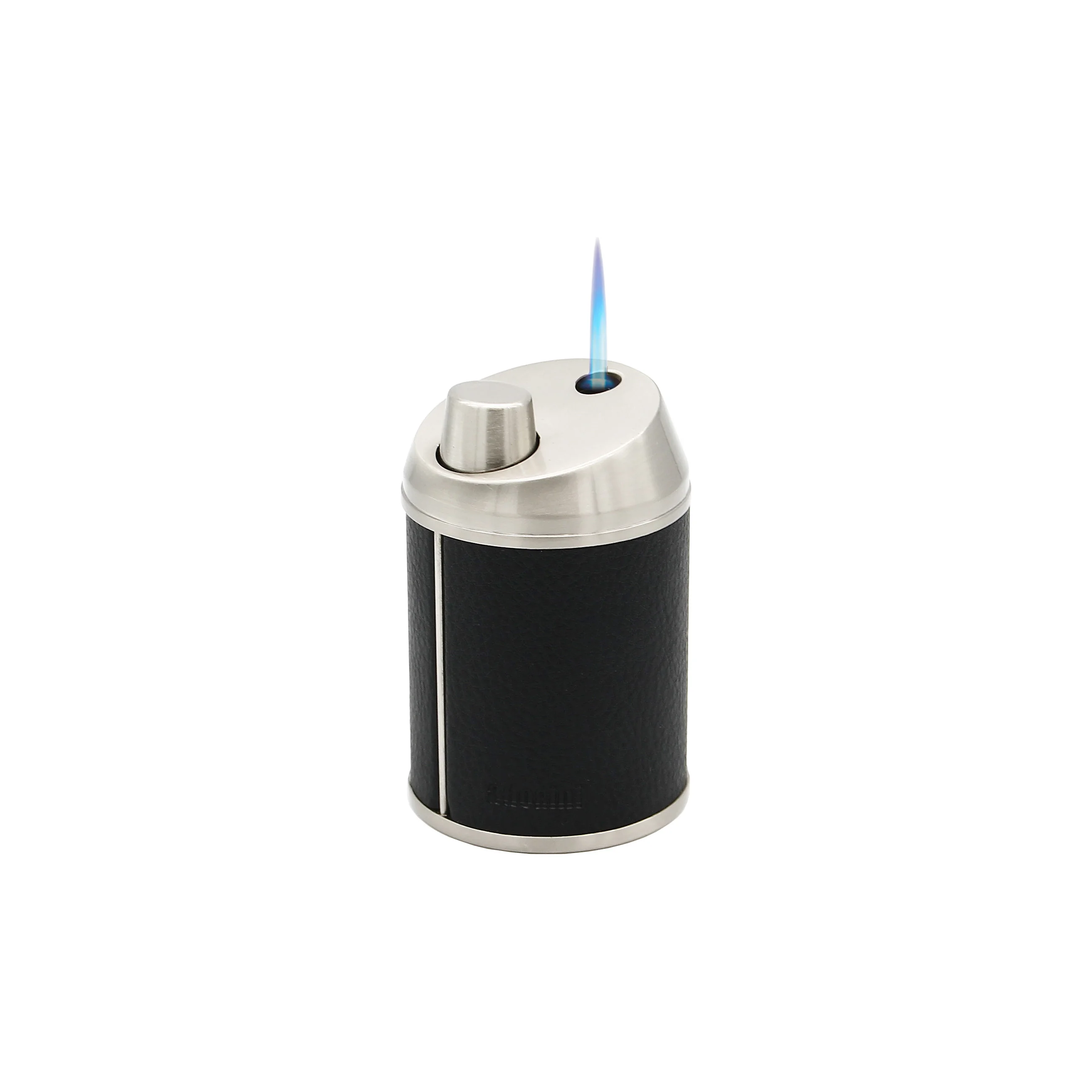 This modern adorini table lighter with jet flame combines sophisticated design with high-quality functionality. The leather-covered lighter body makes an impressive statement, perfectly accentuated by the chrome-plated ignition and the decorative edge at the base.