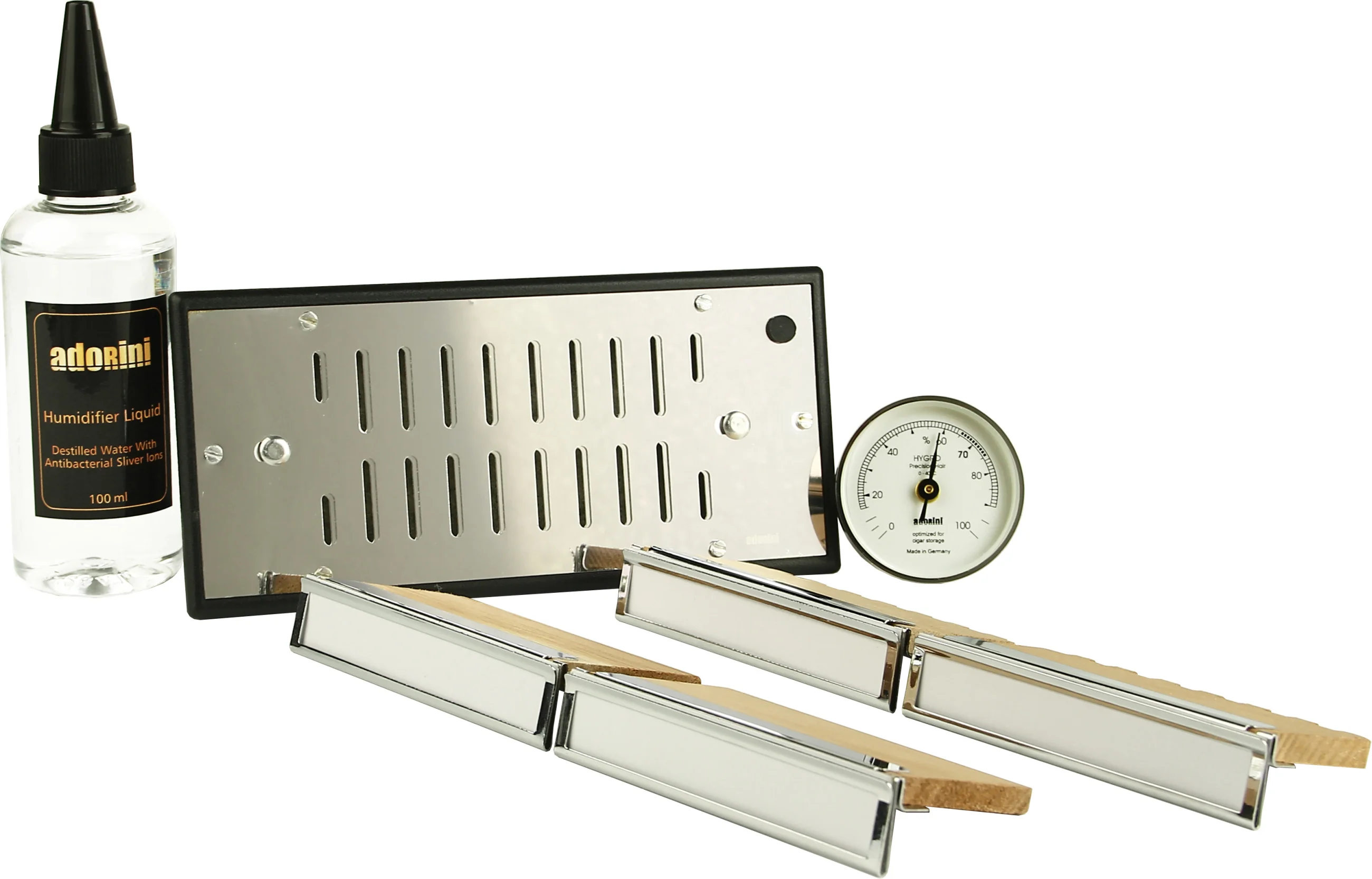 - As a bonus, the humidor contains a 100 ml bottle of Humifit humidification solution from adorini. This means you are well prepared to put your new humidor into operation immediately.