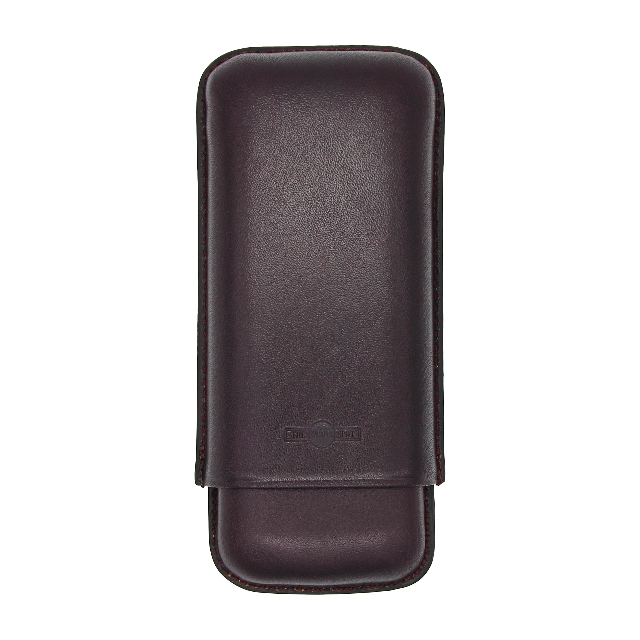 Inside, the case offers space for two cigars of different sizes. Practical notches ensure a secure hold during transport. The interior is lined with soft, light-colored leather, providing reliable protection for your cigars.