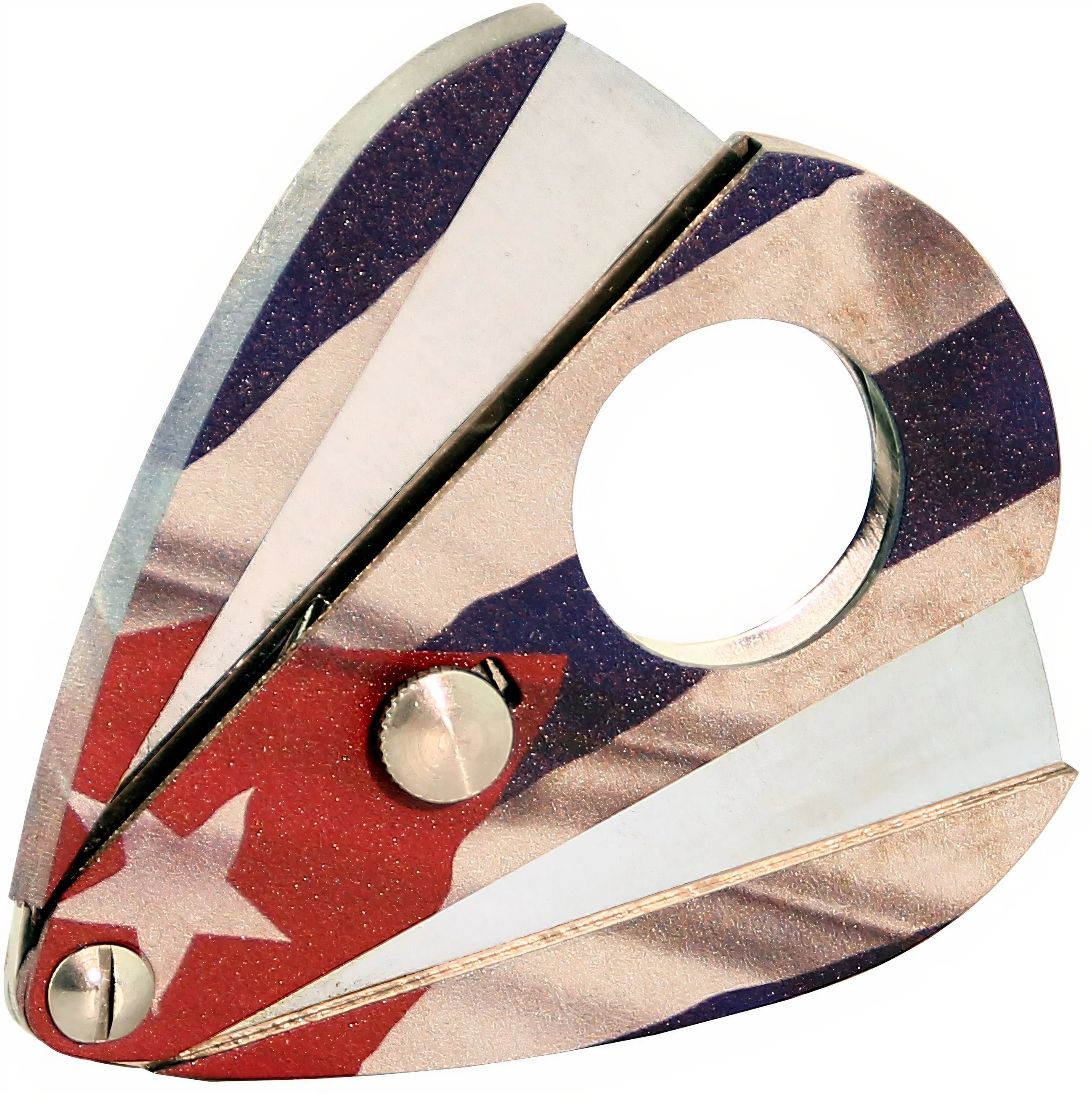 An elegant, teardrop-shaped cigar cutter with the impressive motif of the waving Cuban flag on the front and back. This cutter combines stylish design with maximum functionality and is an ideal accessory for lovers of Cuban cigars.