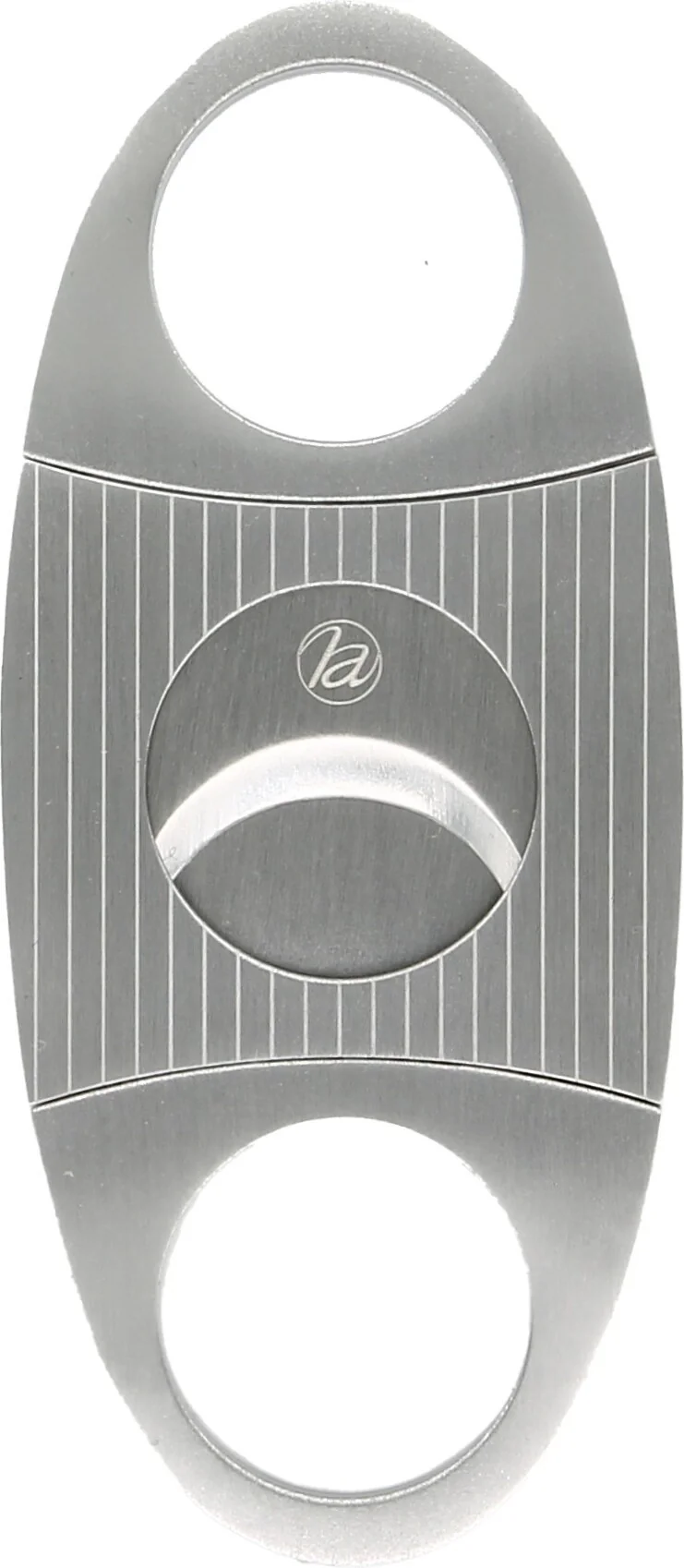 This beautifully crafted double guillotine cutter is dressed in a bright satin chrome finish with a striped line pattern across the central housing. This pleasing contemporary look combines with the cutter’s alluring curves to make for a tasteful style ideal for any occasion.