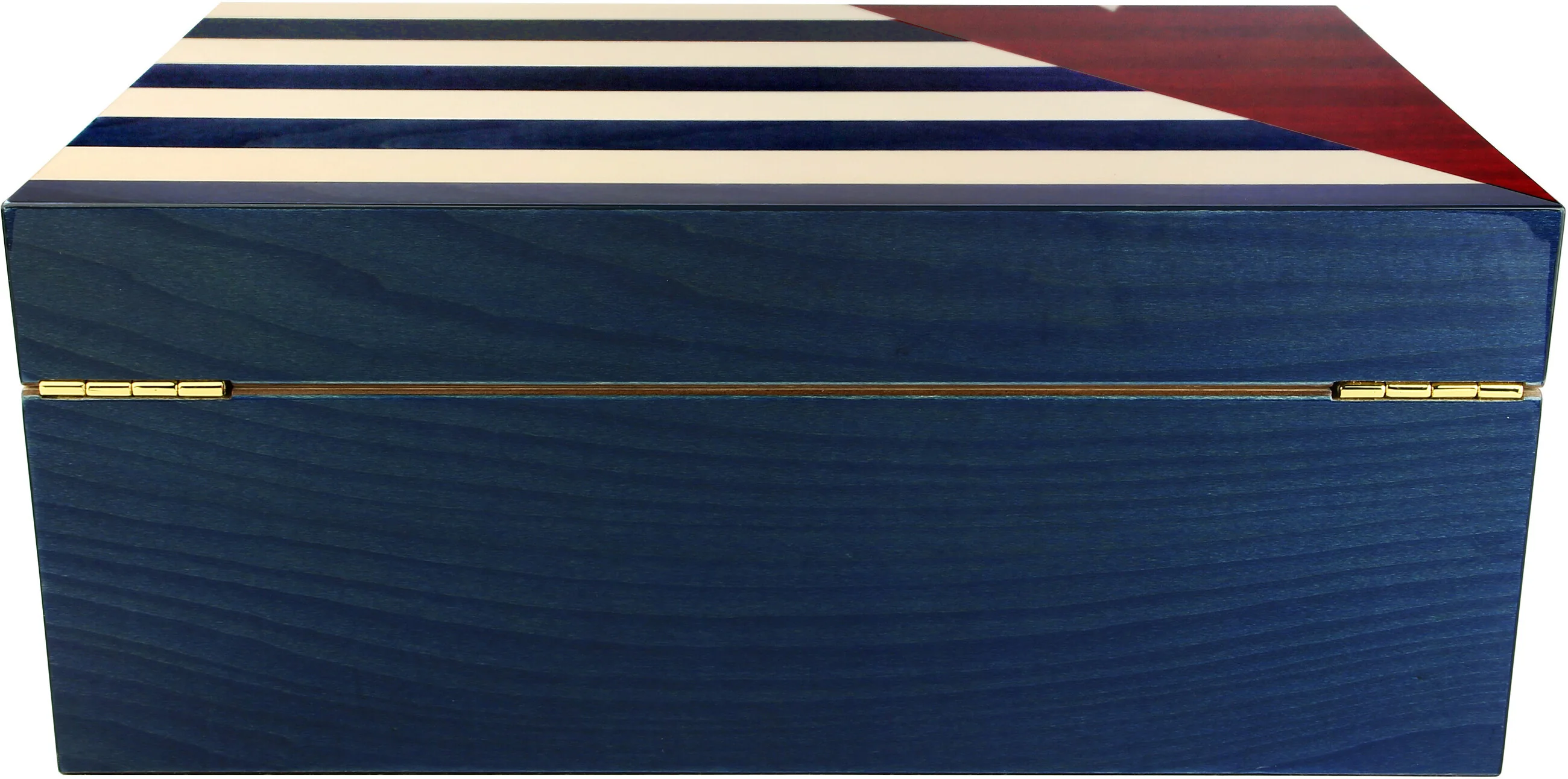 High-end humidor. I love the Cuban flag gloss finish. The humidor arrived well-packed and met my expectations.