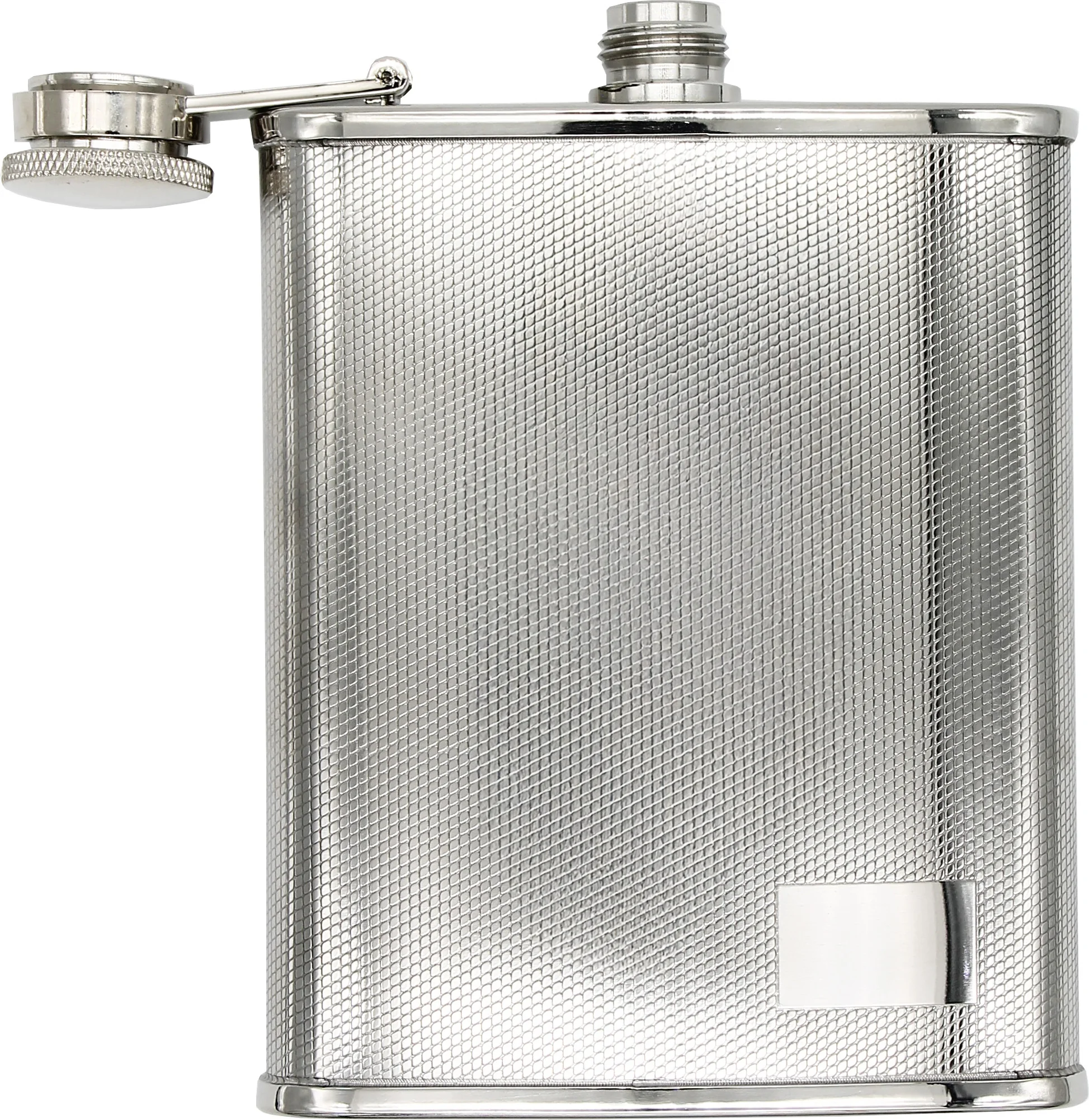 This silver-colored hip flask combines functional handling with a classic look. The fine diamond pattern gives the stainless steel hip flask a subtle texture and a pleasant feel. With its 180 ml capacity, it's ideal for on the go and easy to carry thanks to its compact design.