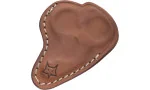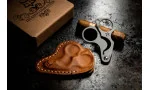 - High-quality case made of brown leather with white contrast stitching that offers protection and stylish storage.