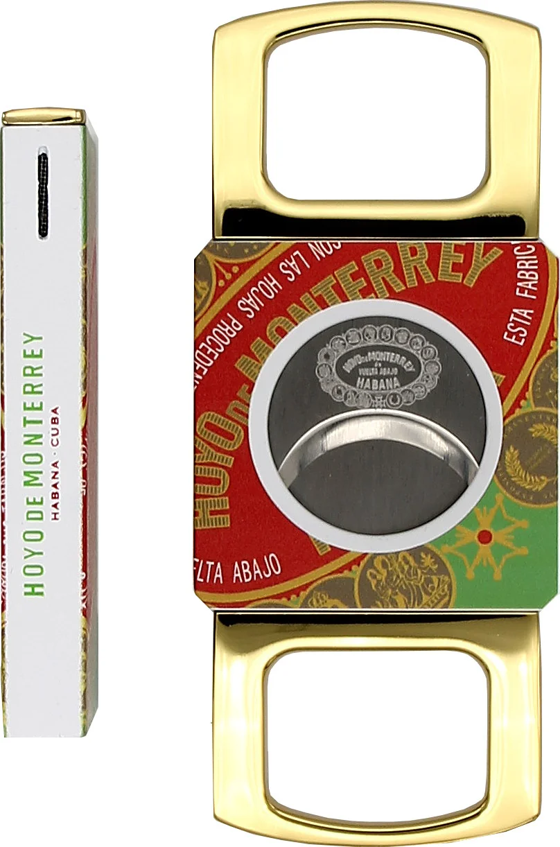 This Hoyo de Monterrey lighter and cigar cutter set combines two high-quality accessories from the renowned Cuban cigar brand Hoyo de Monterrey. Both pieces of the set feature the brand's signature green and red motifs and the Hoyo logo on both sides, creating a distinctive and iconic look.