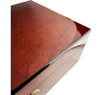 From travel and desktop models to large treasure chests, every Daniel Marshall humidor is crafted using only the highest quality materials. Beautifully grained or burl hardwoods are a Marshall specialty, with edges of black ebony adding an elegant refinement to the look of the humidor. Daniel Marshall's famous 1000-coat finish adds layer upon layer of lacquer to the humidors for a striking high-gloss appearance that brings out all the best of the wood grain pattern.