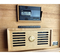 Daniel Marshall's desktop humidors also include a digital hygrometer. It's easy-to-read display lets you check current levels, as well as high and low, of both relative humidity and temperature. The hygrometer comes with strong magnets that hold it securely in place inside of a Spanish cedar frame on the underside of the lid.