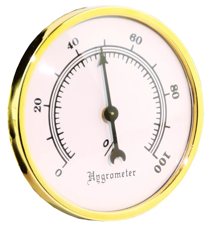 This attractive hygrometer features a golden outer rim which encircles a white face with a classic analog dial for a timeless look ideal for almost any humidor. Its larger diameter and numbers make for an easy-to-read device that will let you better keep track of the humidity in your humidor.