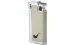 A handy pipe lighter in champagne with shiny silver-colored decorative elements – ideal for pipe smokers. The pipe imprint on the casing makes the lighter immediately recognizable as such. The side-mounted ignition allows for easy and safe lighting of the pipe without burning your fingers.