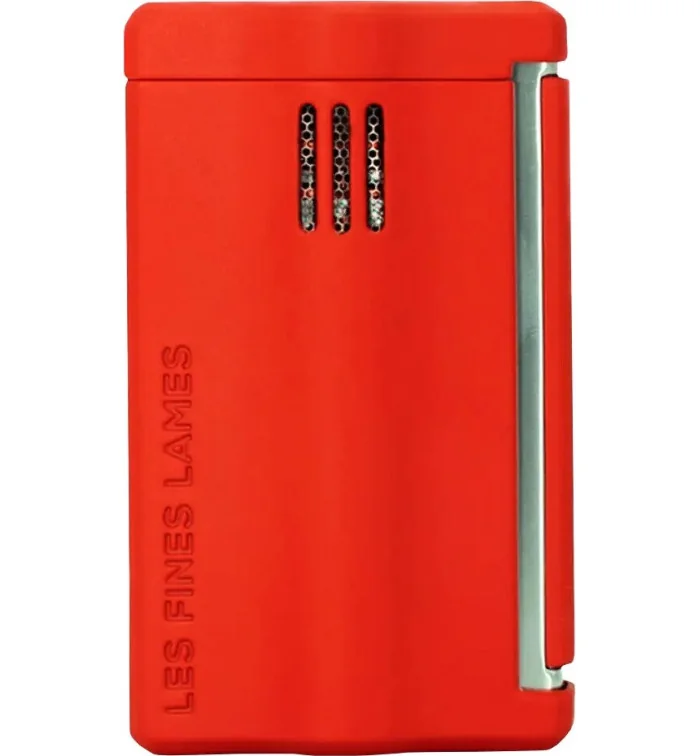 Design meets function – the cigar lighter with style The Le Feu RS Lighter in red from the French brand Les Fines Lames is an elegant accessory for discerning cigar lovers. According to the brand founder, the name RS stands for "Ring Shape", inspired by the shape of a cigar ring. This design concept is reflected in its unusual construction: Viewed from above, the lighter begins rectangular, transitions into a curve, and ends rectangular again – an unmistakable visual statement.