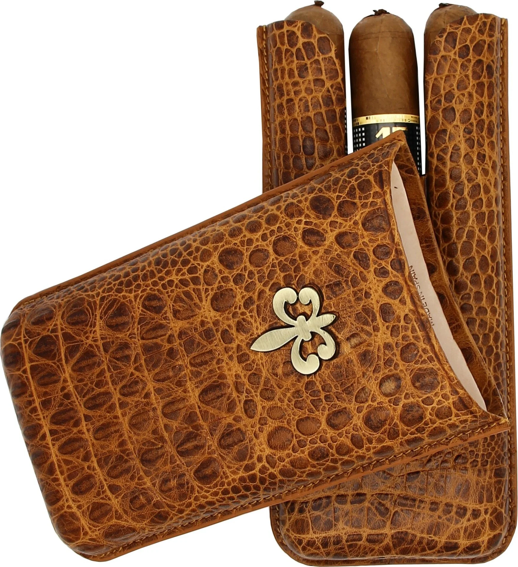 Montecristo Fleur de Lis Cigar Case Leather Croco Brown 3 pcs.