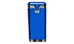Palio Polaris Jet Lighter in Blue is a high-performance jet lighter with a sleek bliue finish and elegant silver accents. Featuring three powerful jet flames that merge into a reliable burner, this lighter offers consistent ignition for cigar enthusiasts. The ignition is shielded by a protective cap, keeping dust and lint away to ensure long-lasting performance. The Palio logo is prominently displayed on the front ignition switch, which ignites the lighter with a smooth downward slide. A large, transparent gas window on the left side allows for easy monitoring of the fuel level. Naturally, the lighter is refillable, and the flame intensity can be conveniently adjusted by hand at the base of the lighter without additional tools.