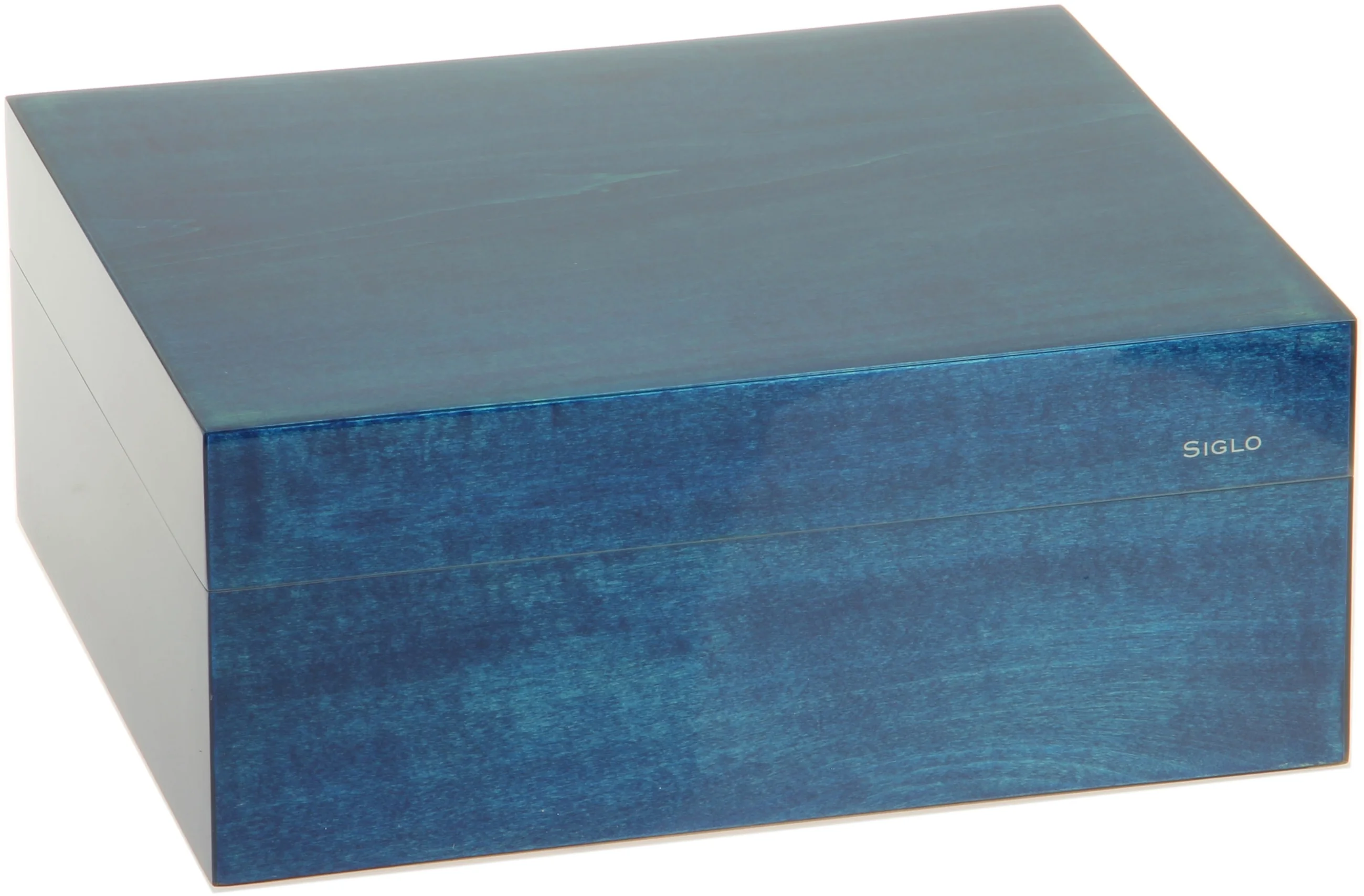 • Siglo humidors stand out for their impeccable glossy finishes. Impressive glossy blue finish on top of a wood veneer.