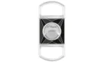 The S.T. Dupont Cigar Cutter Fire Dupont. It comes from the Fire X collection, which was launched in 2024 and includes various products such as handbags, lighters, ashtrays and this cigar cutter with the modern Fire X motif. The classic double blade cutter allows you to cut your cigars cleanly and effortlessly without putting too much pressure on the cigar head. The cutter has finely rounded edges on all sides, which make it an absolute pleasure to hold. The blades move in and out in such a smooth and smooth process that you can clearly feel the quality of this product even before you actually use it. The blades are ground at an angle and the house brand lettering is engraved on one blade. The motif inlet, which is prominently embedded and highly polished on both sides of the cutter, shows the Fire X motif in a graphically modern design with gray, black and white decorative lines. The diameter of the blade opening is 2.4 cm, so it can cut cigars up to a ring gauge of 60. The item comes in attractive gift packaging and is ideal as a gift. In addition to the warranty card, the packaging contains a simple velvet bag for the safe storage of your fine cigar tools.