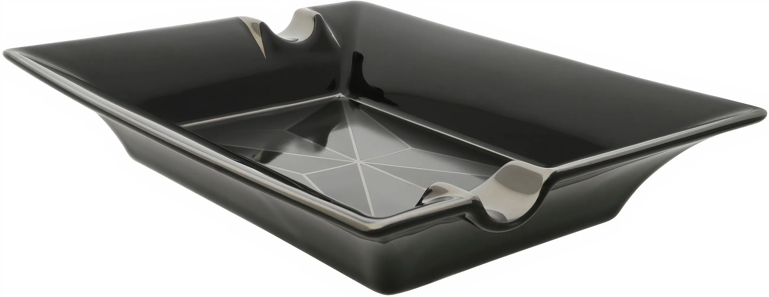 The S.T. Dupont Fire X Ashtray Black is an elegant cigar ashtray from the French luxury goods manufacturer S.T. Dupont, featuring an impressive size. Made of porcelain, it has two cigar rests. The Fire X motif, part of the newly launched 2024 collection from Dupont, adorns the interior of the ashtray with a modern graphic in grey, black, and silver decor. The brand logo is also incorporated into the design. The two cigar rests are silver lacquered. The product comes in an attractive gift box.
