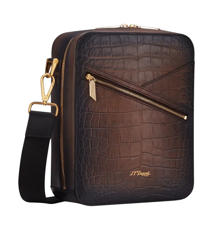 S.T. Dupont Le Grand Atelier cigar crossbody bag Havana The S.T. Dupont Le Grand Atelier cigar shoulder bag in brown tones is the perfect choice for cigar lovers who are on the go a lot. Made from the best Italian leather and certified by the Leather Working Group (LWG), this bag combines modern design with practical functionality. The S.T. Dupont brand logo adorns the front of the bag and gives it an elegant touch.