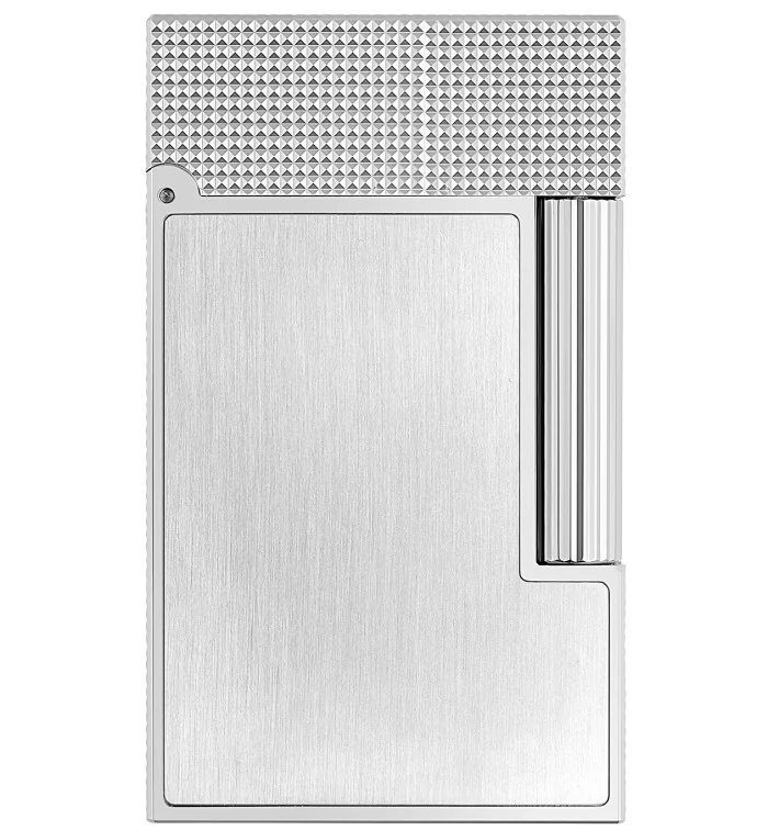 - Design and Material: The lid and sides of the lighter are adorned with the famous Micro Diamondhead pattern from Dupont. The front and back are made of brushed platinum, creating a stylish combination of different materials and finishes.