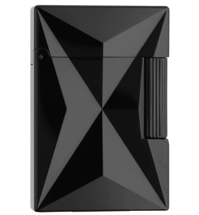 - Design and Materials: The lighter is a small model of the Ligne 2, made from a glossy black lacquered body. The sharp, graphic lines are reminiscent of the chemical symbol for fire.