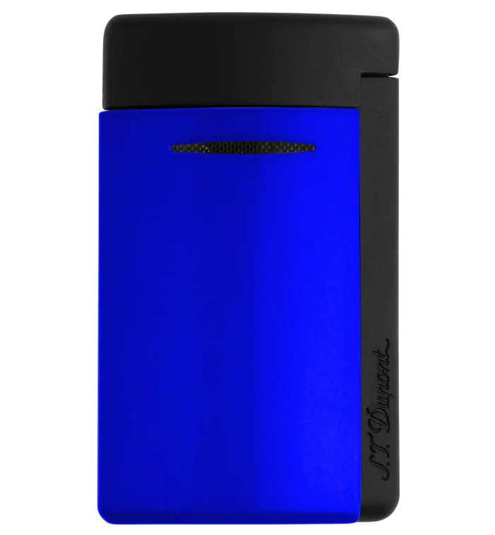 The S.T. Dupont Minijet Lighter in Fluo Blue is a new model released in 2024 as part of the vibrant Fluo collection. It features a striking blue body with matte black elements. This small and handy single-flame jet lighter is perfect for everyday use.