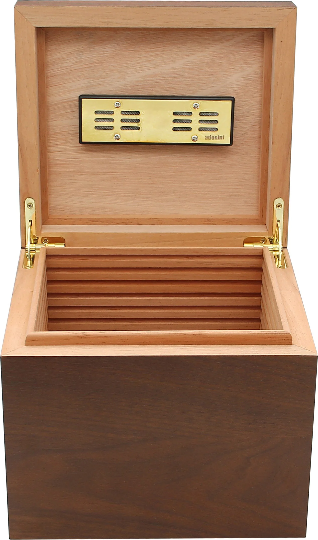 The Vedado humidor comes with a passive humidifier in gold. This humidor is based on acrylic polymer crystals, which should be moistened with distilled water to ensure stable humidity. Thanks to the included magnets with removable adhesive backing, the humidifier can be securely attached to the lid.