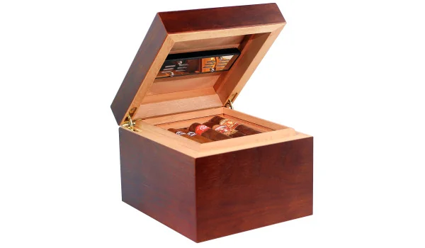 A hygrometer for reading the humidity is not included, but the humidor can easily be retrofitted with a separately available hygrometer.