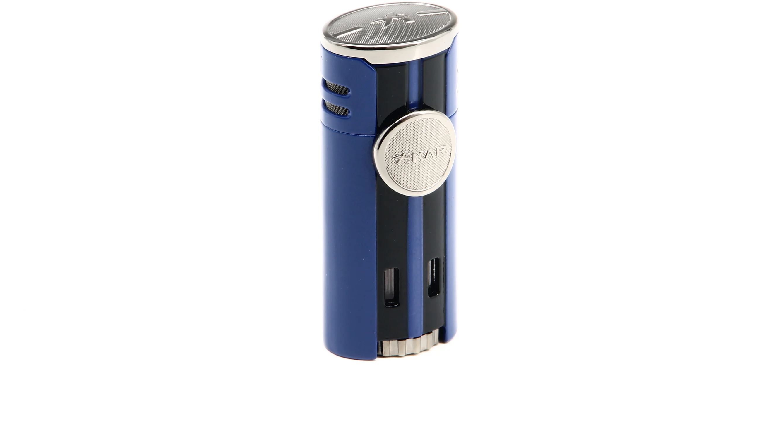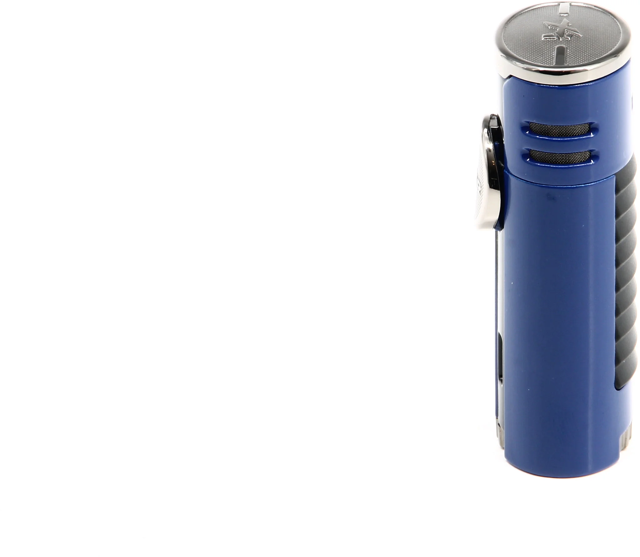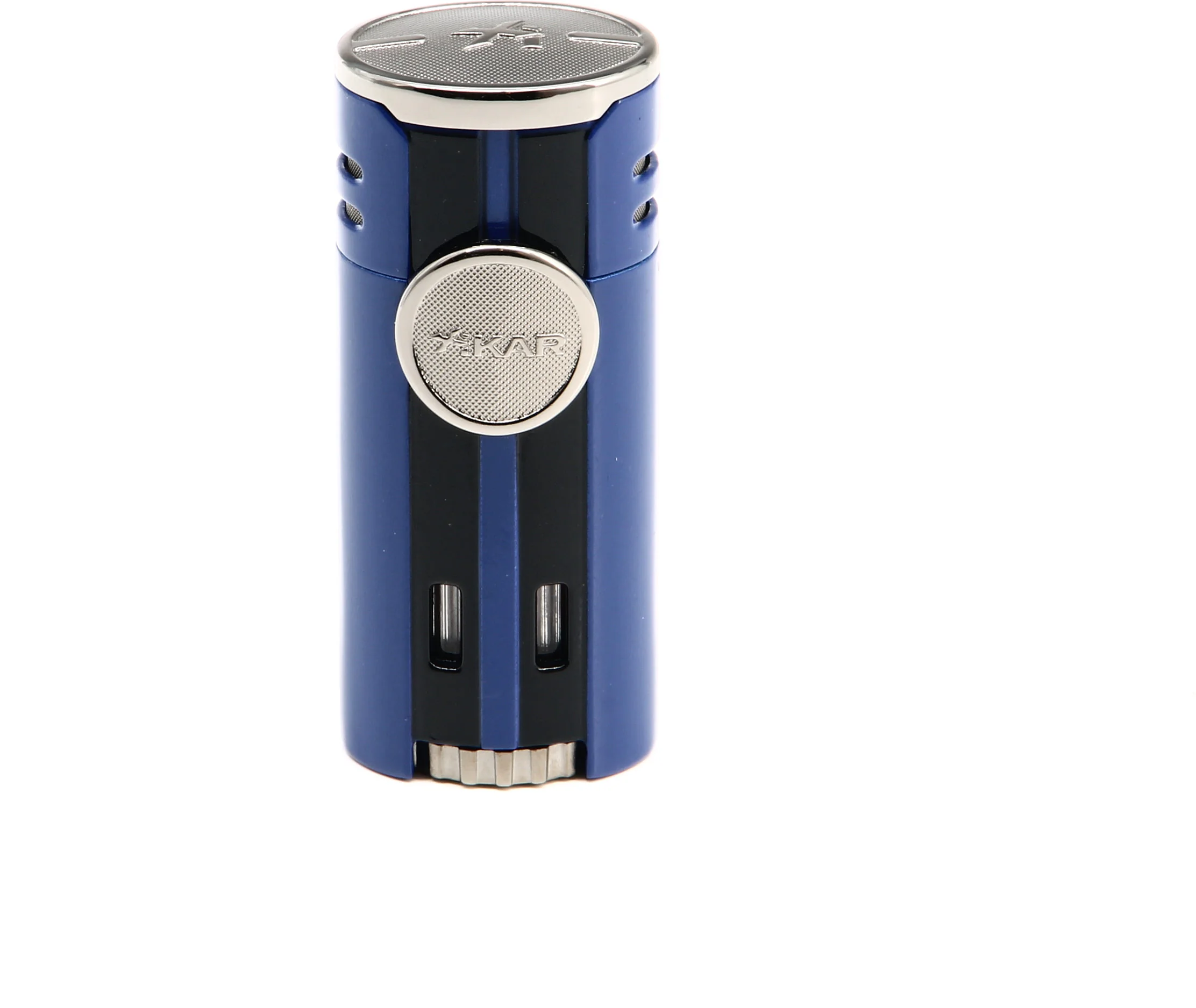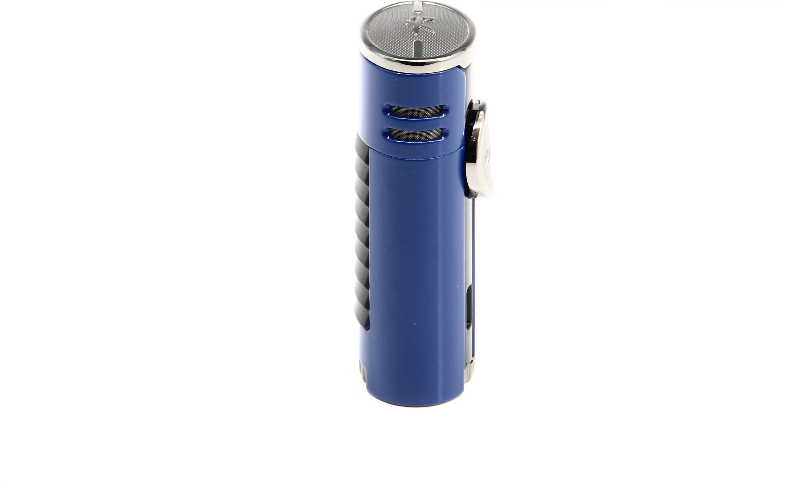 This Xikar HP4 Quad Lighter immediately catches the eye with a striking blue finish that is underscored by chrome accents. Reminiscent of the supercars that inspired the lighter’s design, a louvered back panel adds extra flair to the sleek and modern look.