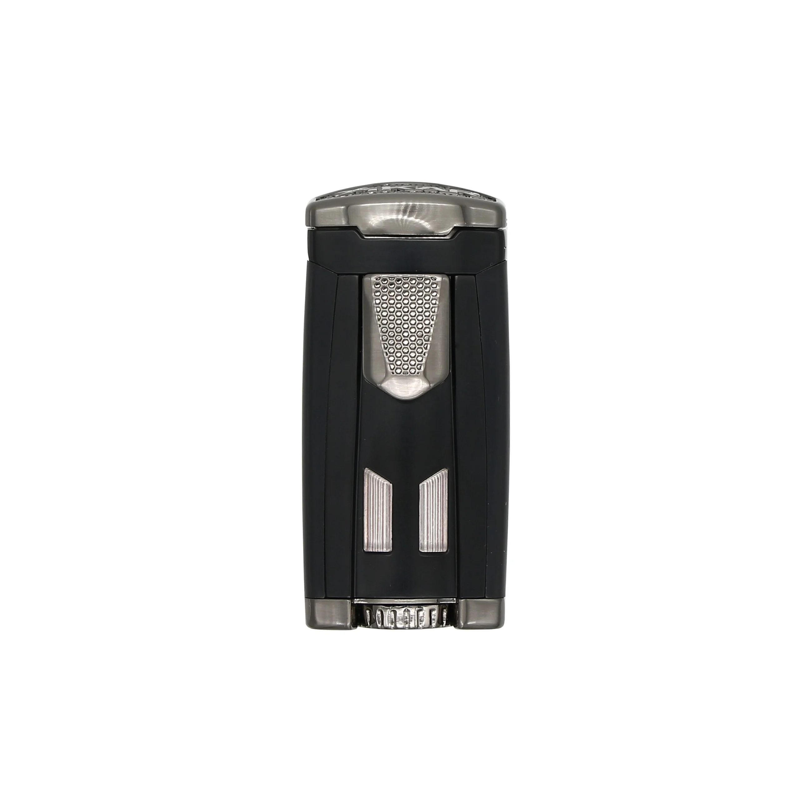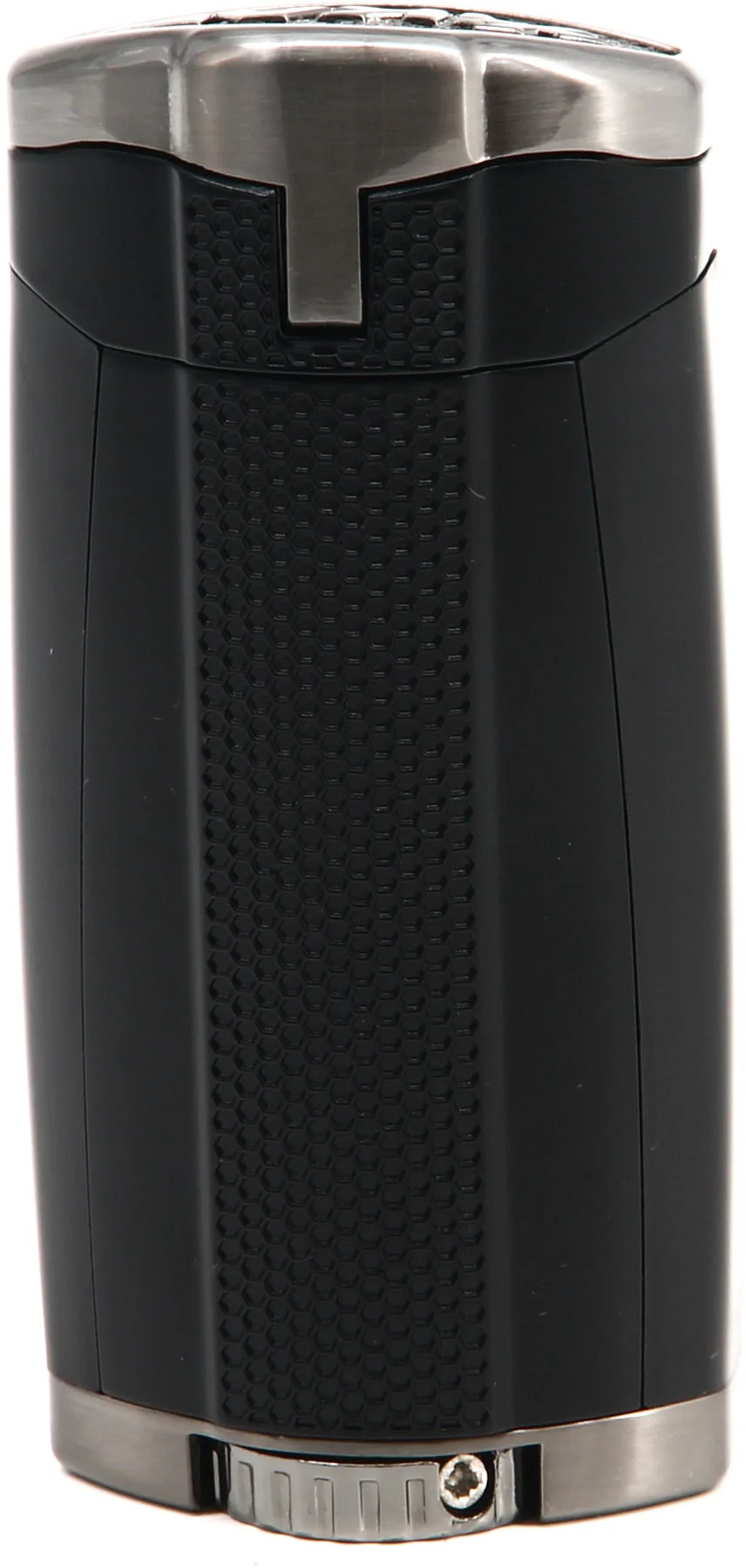 The HP3, aka the High-Performance Triple Flame, offers up a decidedly modern look with its classic matte black finish contrasting with chrome accents. Its sleek ergonomic contours make the lighter as comfortable to hold as it is eye-catching. It’s a real stunner!