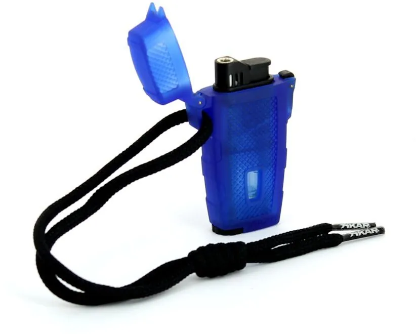 The Xikar Stratosphere High Altitude Turbo Flame Lighter Blue grabs attention with its translucent blue rubberized finish. A crosshatch design lends a more contemporary appearance to the lighter and adds texture so you will always have a solid grip no matter the conditions.