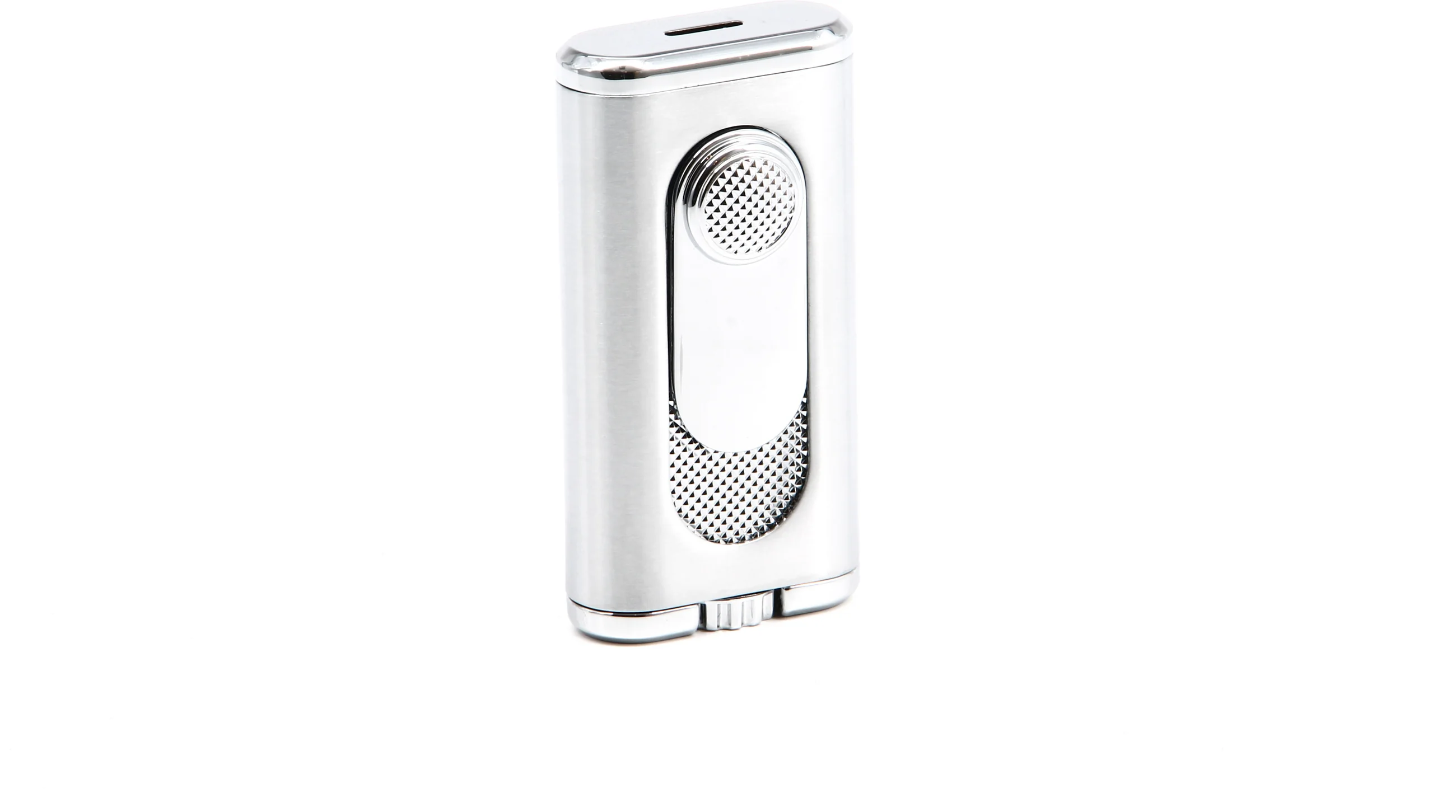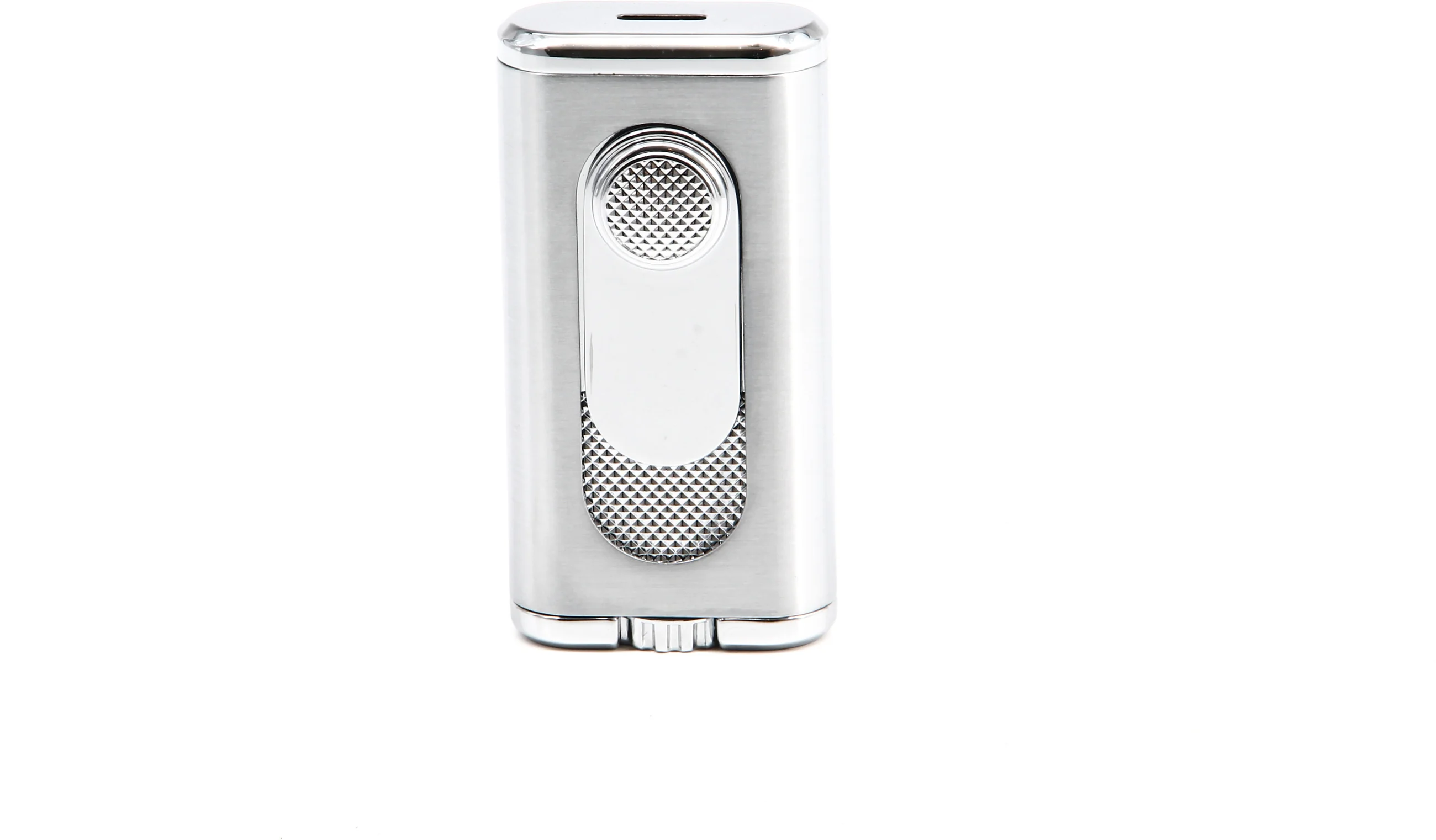 The attractive lighter features a silver and chrome finish with textured diamond pattern accents that also adorn the slide-down ignition trigger. This sophisticated modern look makes the Verano a great option for those gatherings when all eyes are on you.