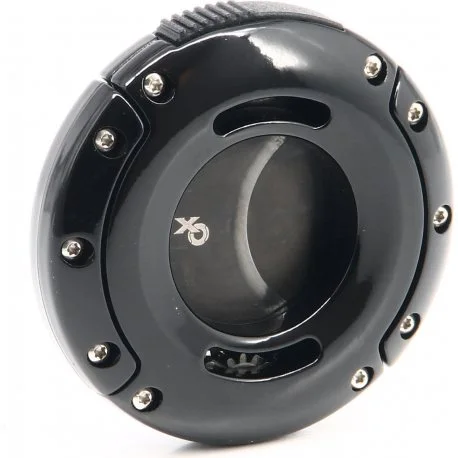 Xikar cigar double-blade cutter with black aluminum body and black, ceramic-coated blades